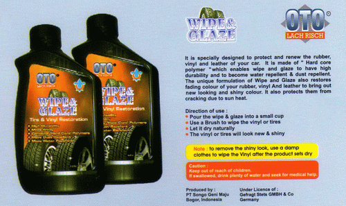 It is specially designed to protect and renew the rubber, vynil, and leather of your car, also restores fading colour of your rubber, vinyl, and leather to bring out new looking and shiny colour. Available in 600ml bottle. |